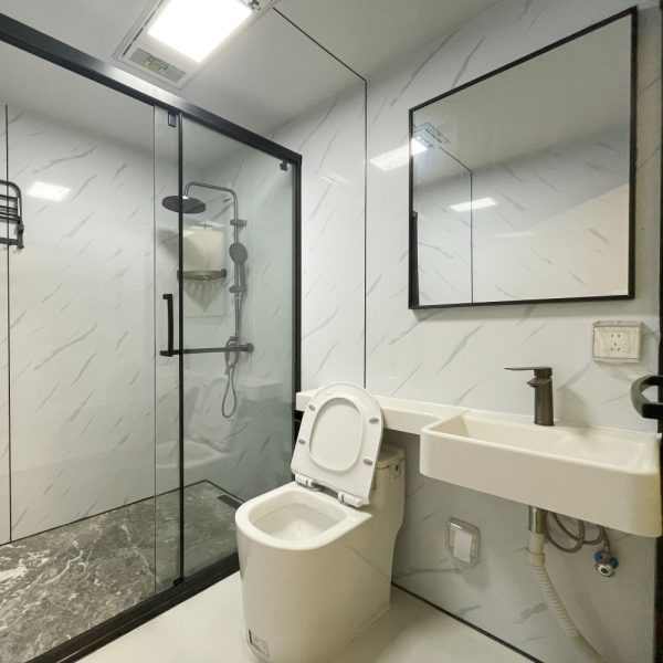 Aluminum alloy glass door, Premium brand showerhead, Sink Washbasin, bathroom mirror, bathroom floor drain, Faucet, toilet, Bathroom heater, stainless steel hanger.
